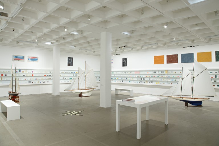 At last someone has managed to put on a Finlay show that might do the work some justice. There has been so much dithering around, so much lack of insight into a full exhibition, that you wonder if it will ever take place. In lieu there are a succession of smaller offerings of mostly printed work from private holdings. I saw one was held in some sort of taxi shed in Pimlico earlier this year : then there’s this, and I see another on the horizon in Portland Oregon, from the collection of Stephen Scobie, I presume. There is nothing amiss with a show based on publication, in fact it is a seminal cause, and Finlay’s work is a triumph of that. But not as an excuse for a more complete airing of all the work in all its facets. Nonetheless, this display at Arnolfini in Bristol which runs until early September, looks magnificent in its arrangement, fresh, light and aerated, the opposite of a mordant attempt at the end of last year in one of the bigger emporiums. I just wish they would give up on other artists’ responses to work being shown! What a bad idea, and how confusing. For instance, what is that little gridded thing in the middle of the floor that I spent ages trying to reconcile with Finlay, thinking it must be a maquette for a photograph for a postcard (maybe one to be called Swastika Compass! ) – then I thought it was the inlay for a table by Graeme Murray that he may have left with Ian Finlay. Eventually I realized it was some other persons work entirely!